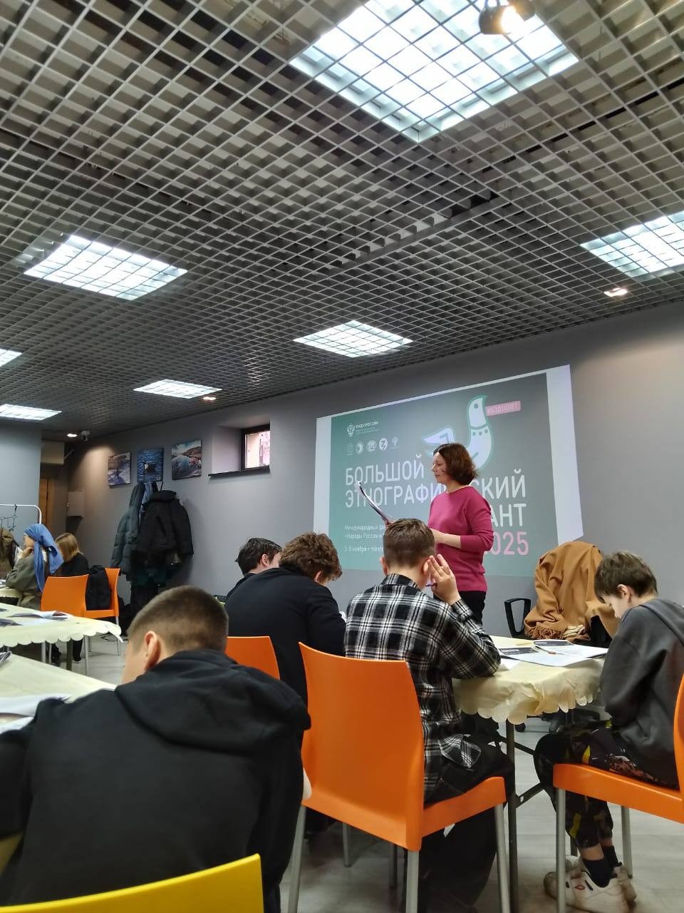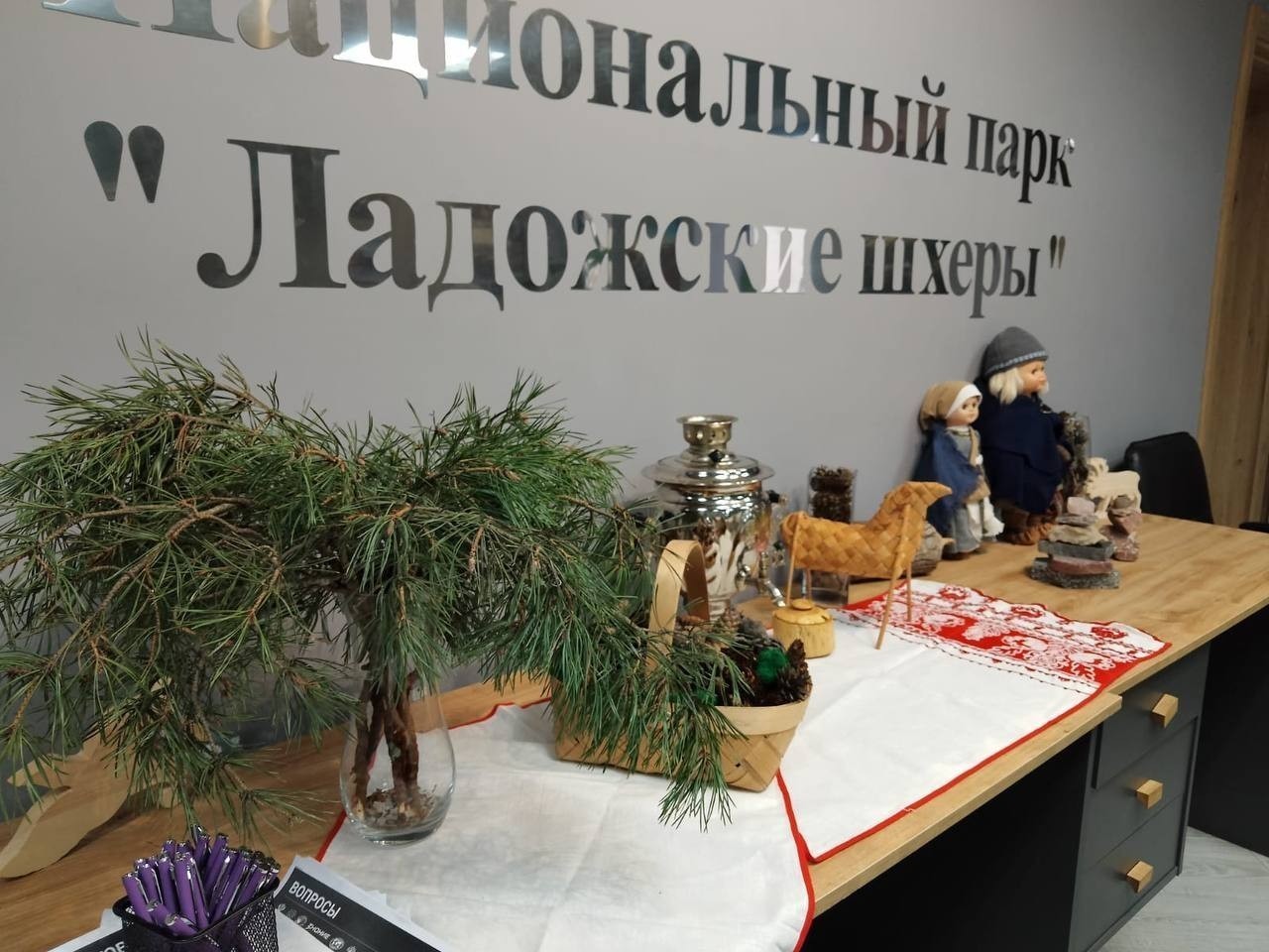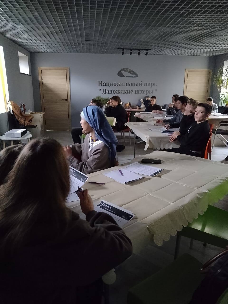 В этом году национальный парк "Ладожские шхеры" стал площадкой проекта. 7 ноября 2025 года 22 ученика СОШ №6, в сопровождении преподавателя, приняли участие в написании диктанта в визит-центре национального парка.