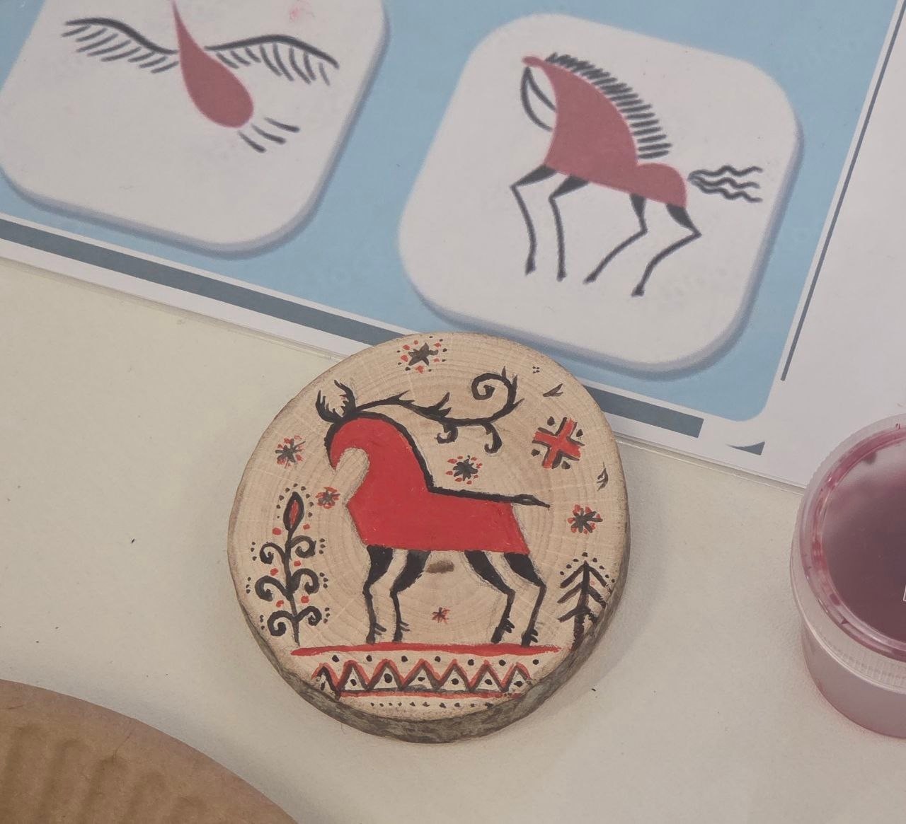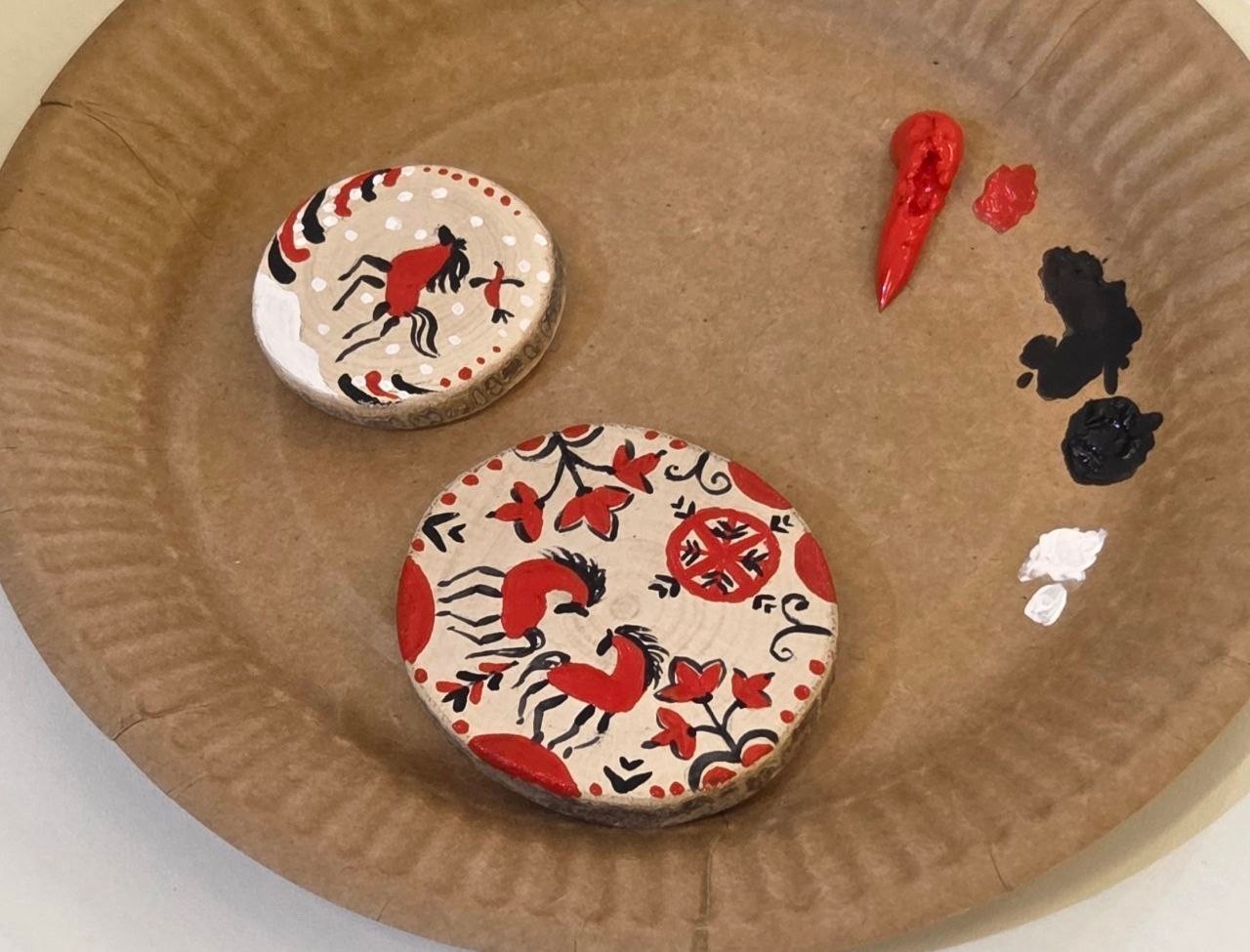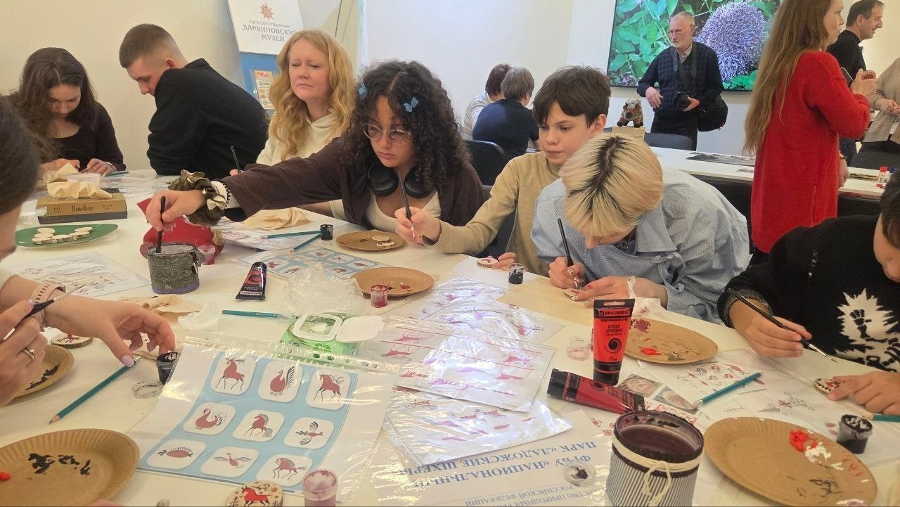 - по мезенской росписи — участники узнали о традициях северного орнамента и расписали деревянные спилы;
