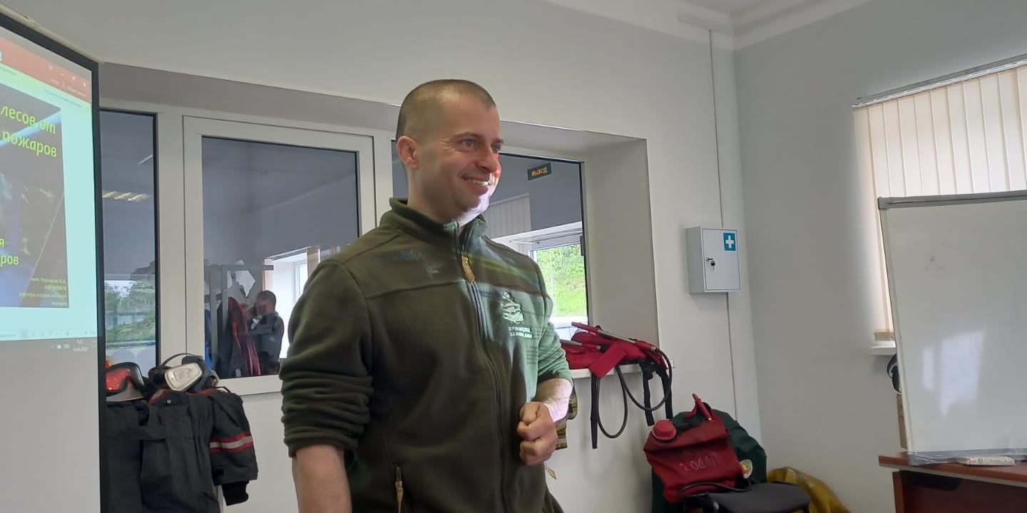 Теоретические и практические занятия с госинспекторами по тушению пожаров проведёт Григорий Куксин, руководитель противопожарной программы Гринпис России, один из создателей общества Добровольных лесных пожарных (ОДПП).