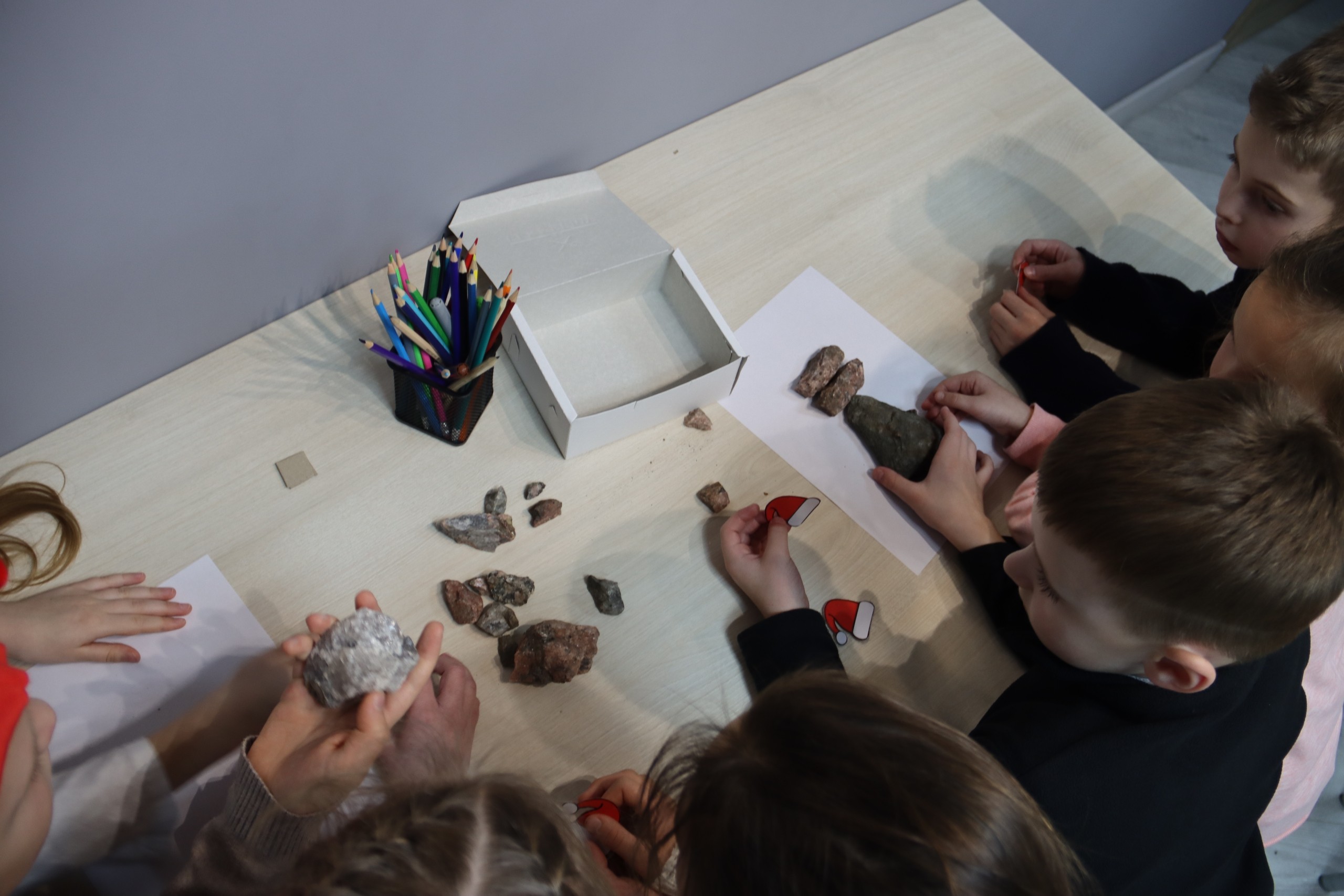 А ученики младших классов совершили настоящее путешествие в сказочную Горную страну гномов. Там они изучали минералы и горные породы , прикоснулись к истории горнодобывающего дела Северного Приладожья, узнали в каких городах и сооружениях использовался карельский камень, отгадывали загадки, ребусы, танцевали и даже нарисовали портрет горного короля и его королевы.