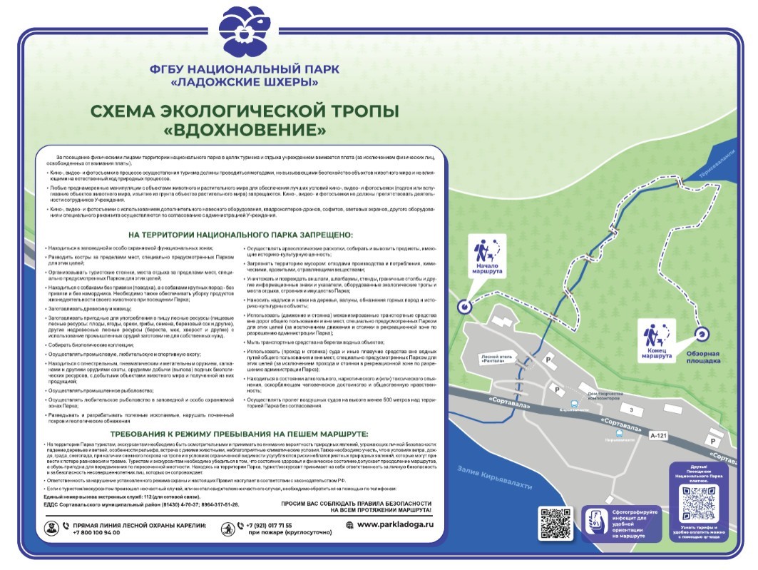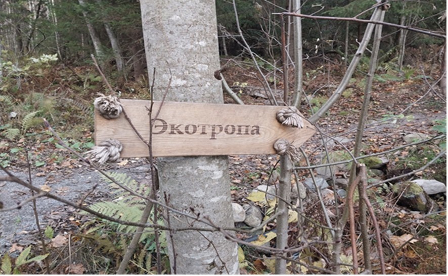 Экологическая тропа протяженностью 2,4 км расположена вдоль древнего Кирьявалахтинского вулкана. Тропа реконструирована и оборудована мостиками и многомаршевыми лестницами, что позволяет с удобством подниматься на гору Композиторов (около 76 метров). Во время экскурсии туристы знакомятся с природными особенностями местности: многокаскадным водопадом Северная мелодия, бобровой плотиной на ручье, таинственным озером Терисевалампи, обработанной ледником скалой Дракона, геодинамическим знаком на вершине. С высоты горы Композиторов открывается вид на фьордообразный залив Кирьявалахти.